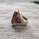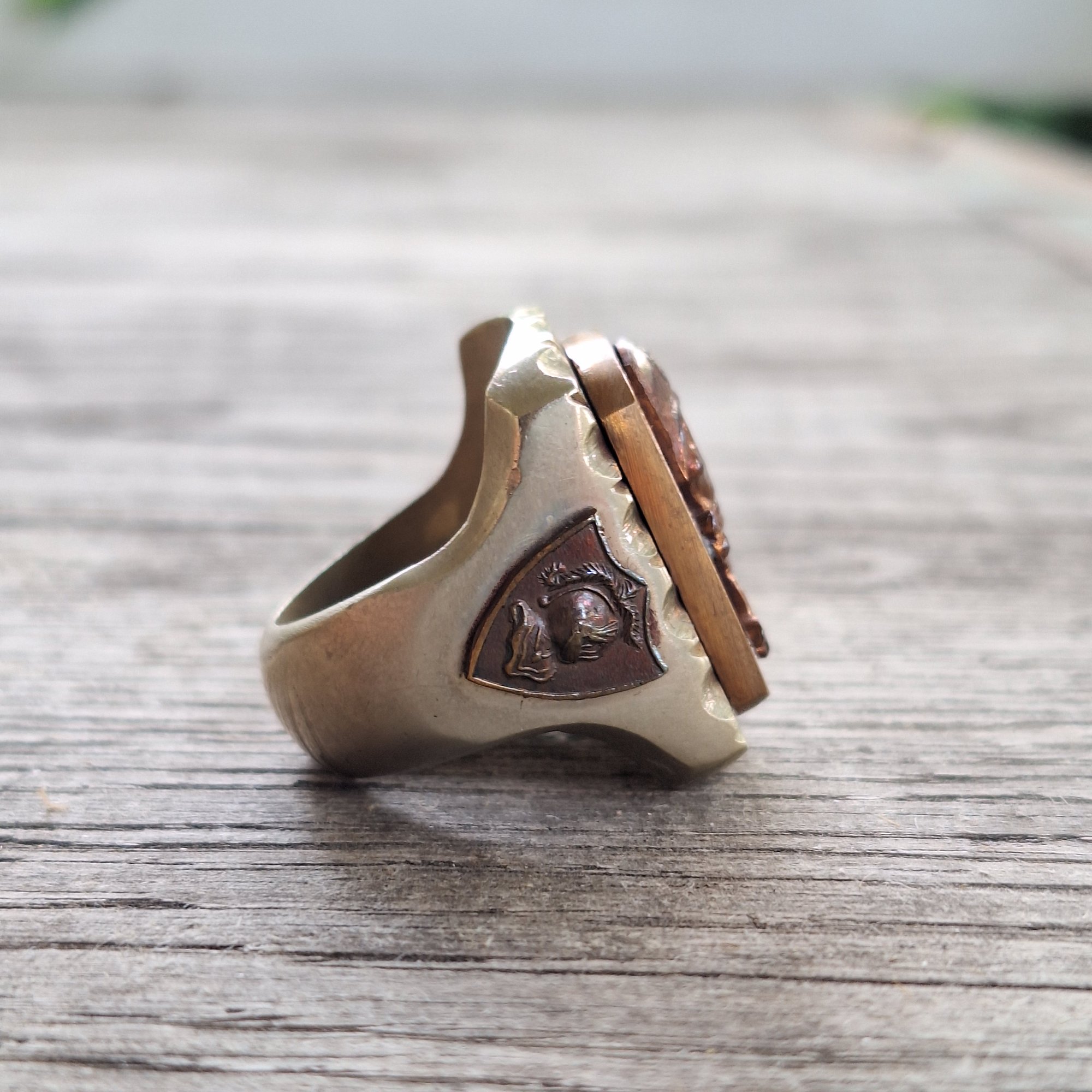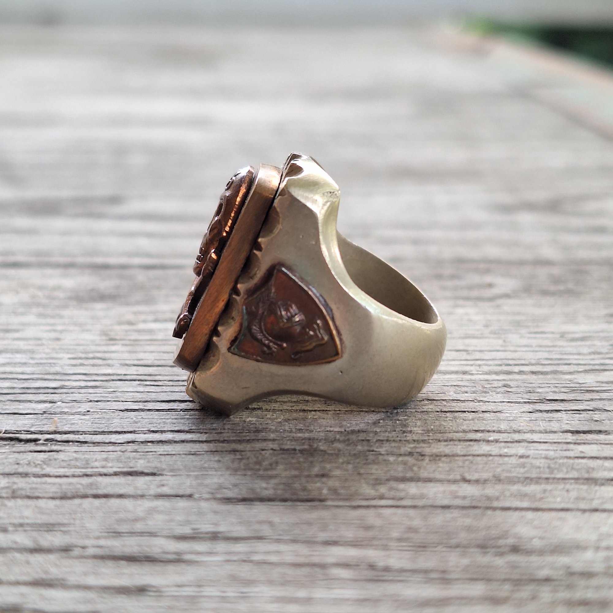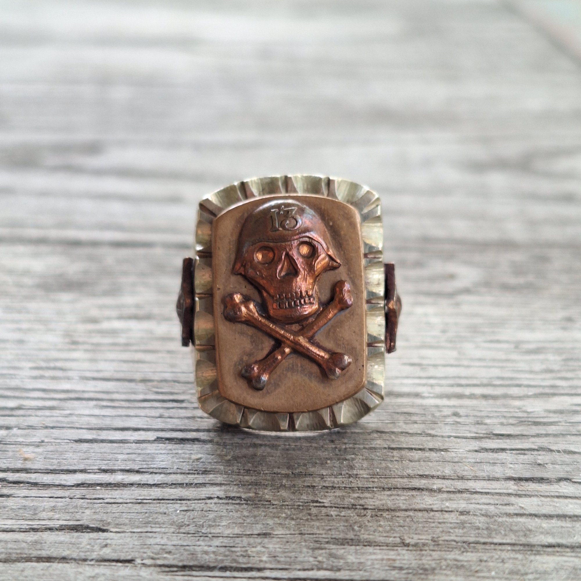 🔮 Mexican souvenir ring with a highly sought after "Vader" skull 'n' bones motif with lucky 13 embossed on the helmet and knight shields adorning both shoulders